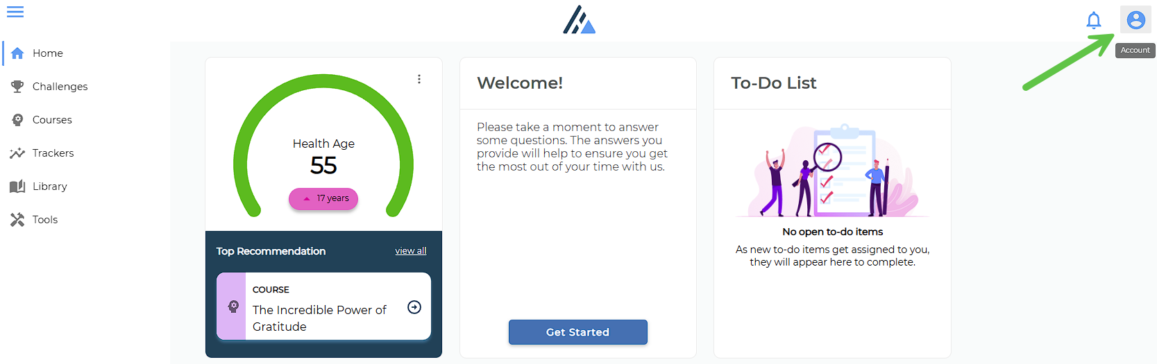 Click 'Account' in the top right hand corner