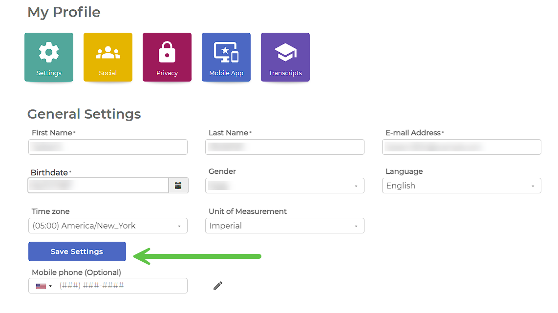 Click on 'Save Settings' to save your information