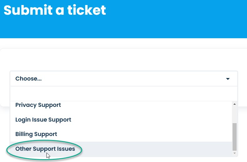 To send a request, click the help button in the lower left-hand corner of the site, the click "Contact Our Support Team" on the right.